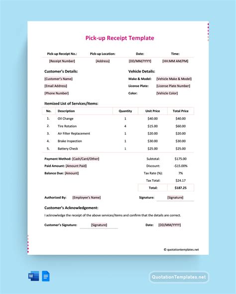 Pick Up Receipt Template . Wondering how to make a receipt? Complete the form details before downloading a blank receipt template.
